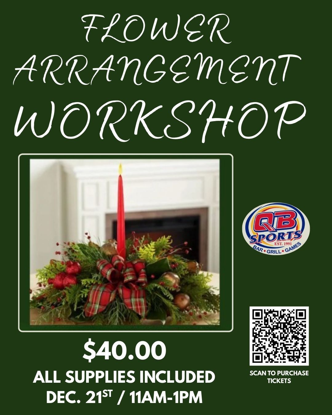 Holiday Flower Arrangement Workshop at QB Sports Bar – December 21st