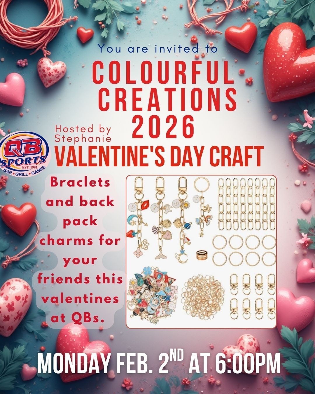Colourful Creations with Stephanie is kicking off their first event of 2026 at QB Sports Bar Grill Games, and it is all about spreading the love — one bracelet and backpack charm at a time.